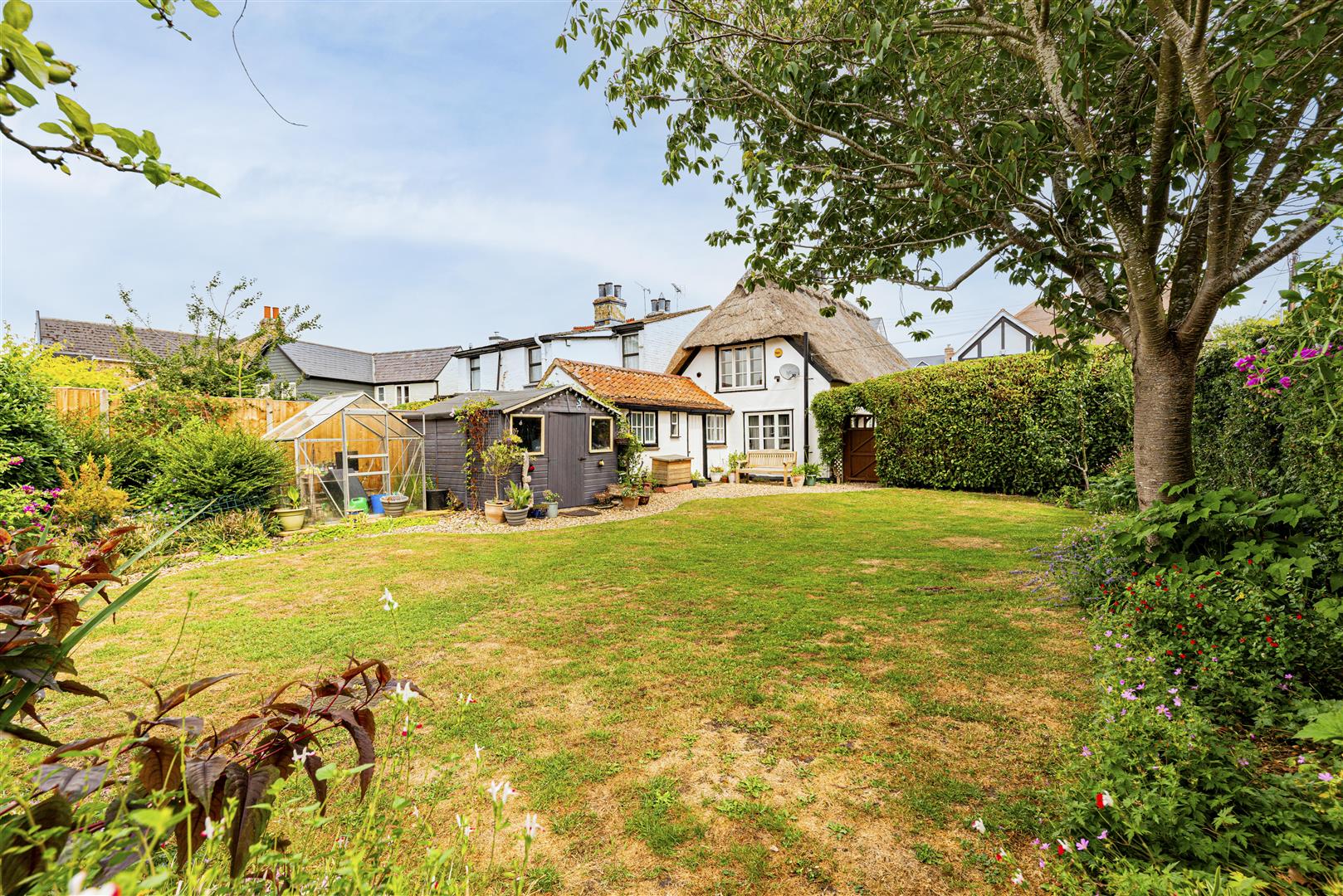 Outside you will find beautiful grounds, the front garden has a number of useful herbs plus roses and a gate that leads to the formal garden which is set within an impressive plot of approximately one-third of an acre. There is a large wildlife area with an area for a pond, it also offers ample off-road parking for several vehicles, a rare find in such a desirable location. The expansive outdoor space provides endless possibilities for gardening, plenty of space for an outbuilding, outdoor activities, or simply enjoying the tranquillity of village life.
