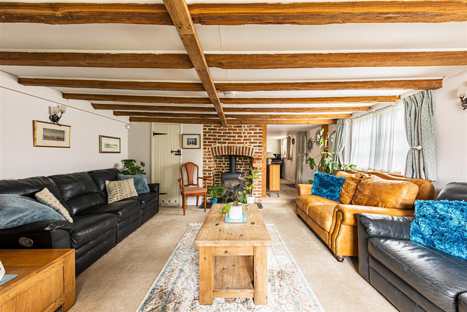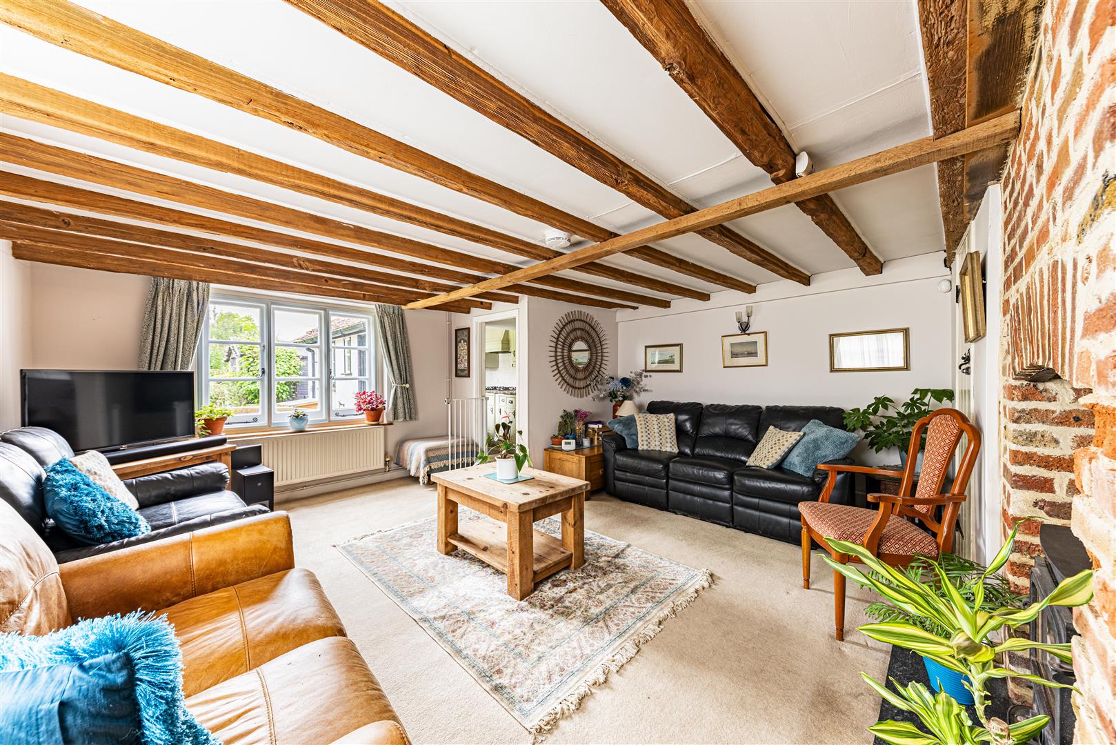 Inside, the cottage boasts two spacious reception rooms, including a cosy lounge and a dining room. The lounge has period feature fireplaces and beams, the dining room has a beautiful inglenook fireplace and both rooms are adorned with an array of period features that enhance its character.
