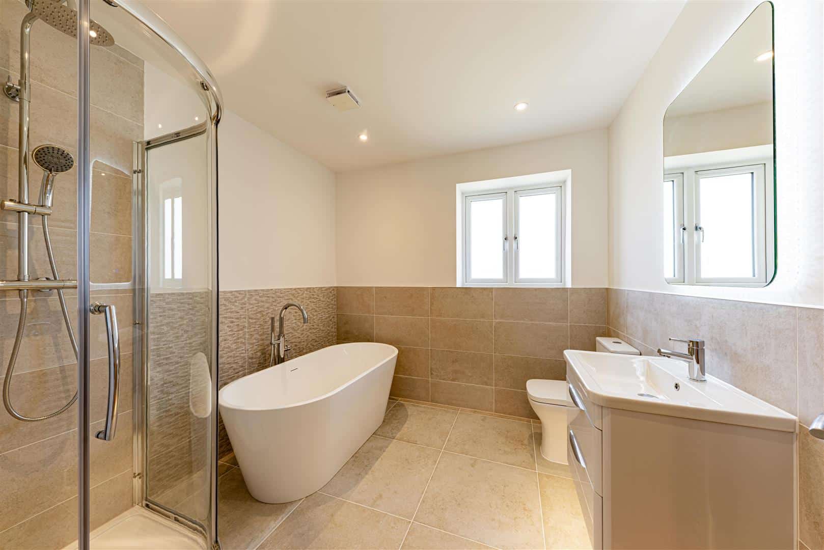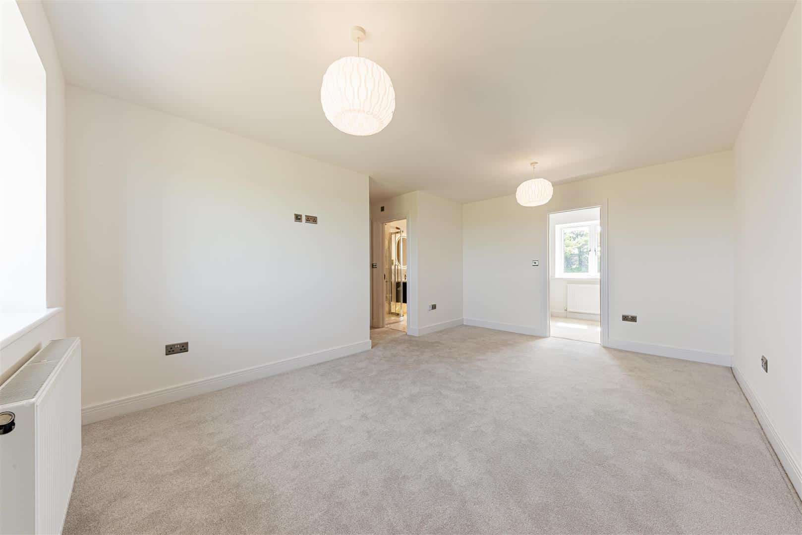 Across the upper floors are five beautifully appointed bedrooms, including four doubles with ensuites and a further double bedroom served by a family bathroom. The luxurious master suite enjoys a walk-in wardrobe, dual-basin ensuite, and serene rural outlooks.