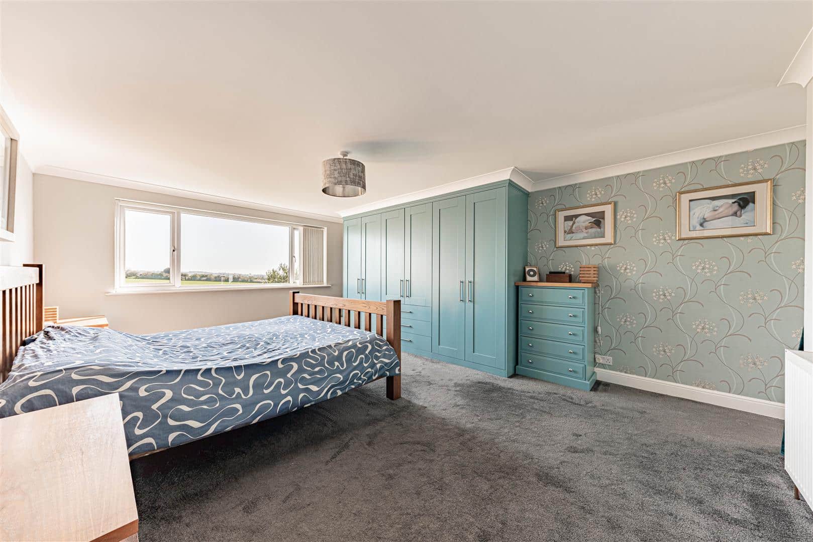 Venture upstairs to discover a bright landing that leads to three generous double bedrooms, an additional office, and a modern shower room. Bedroom one is particularly special, offering built-in wardrobes and stunning views of the bay, while the other bedrooms are comfortable and spacious.