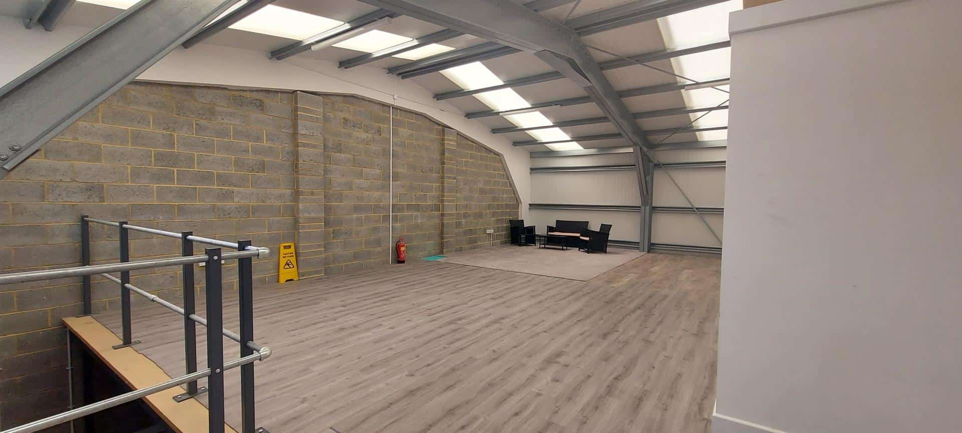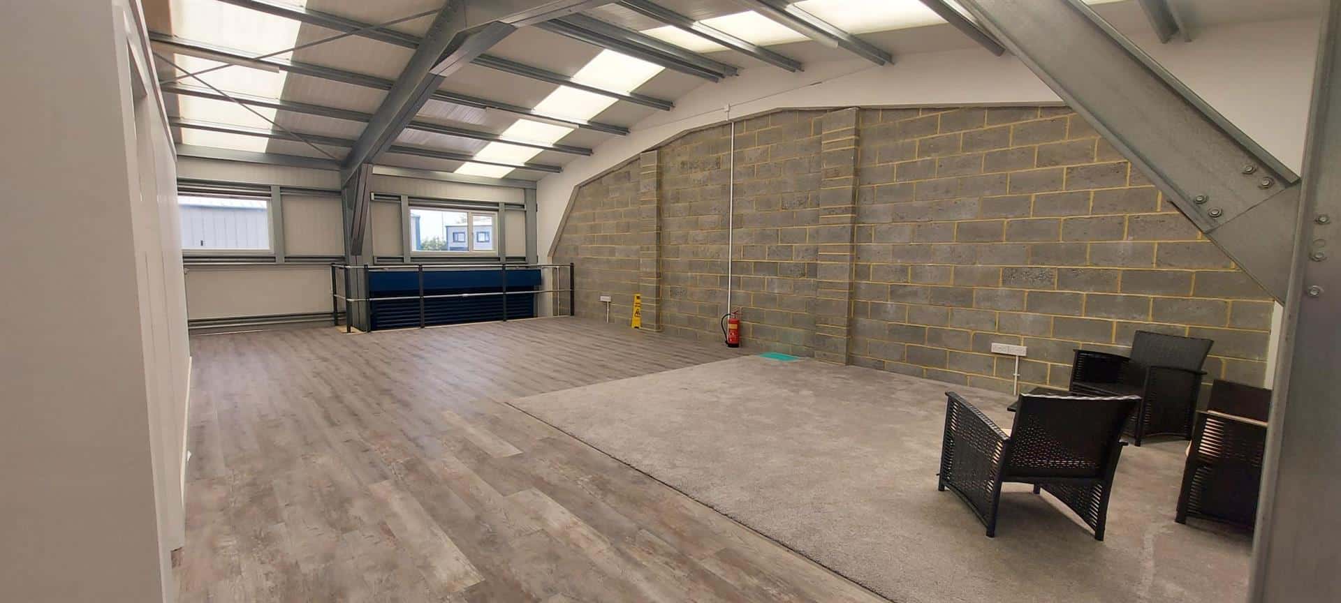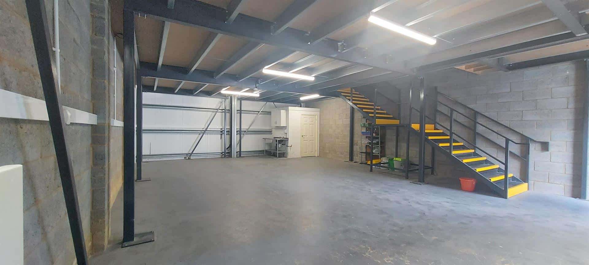 What sets this unit apart is the boxed-in mezzanine first floor, complete with laminate flooring and lighting, making it an ideal space for offices, along with pre-installed wiring for an air conditioning unit, providing the flexibility to tailor this space to your needs effortlessly.