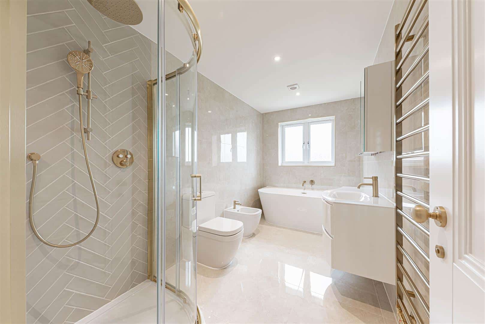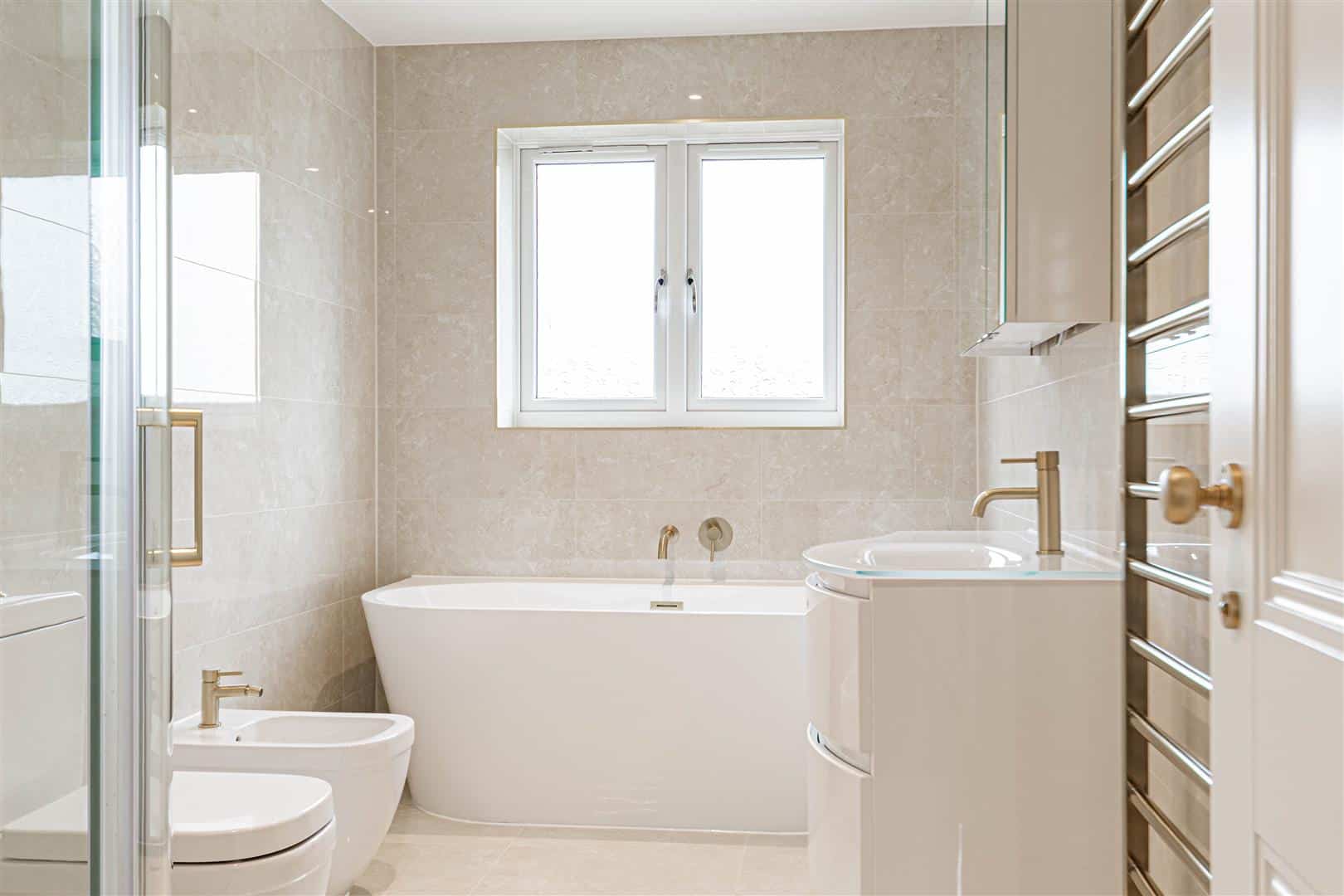 Upstairs you will find 4 double bedrooms, the master with a beautiful, fully tiled en suite. Sliding doors lead out to the balcony, with glass balustrade, perfect for enjoying the breathtaking views. The family bathroom finished to the highest standard, fully tiled with a bath, bidet, separate shower and heated towel rail.